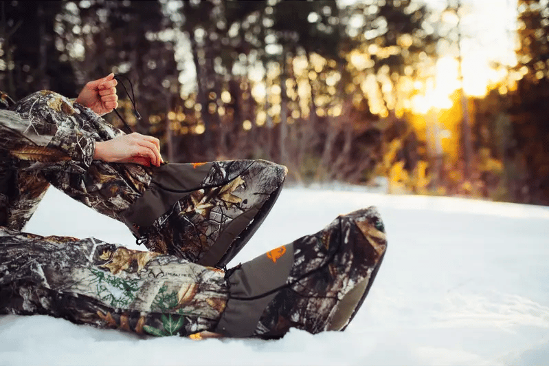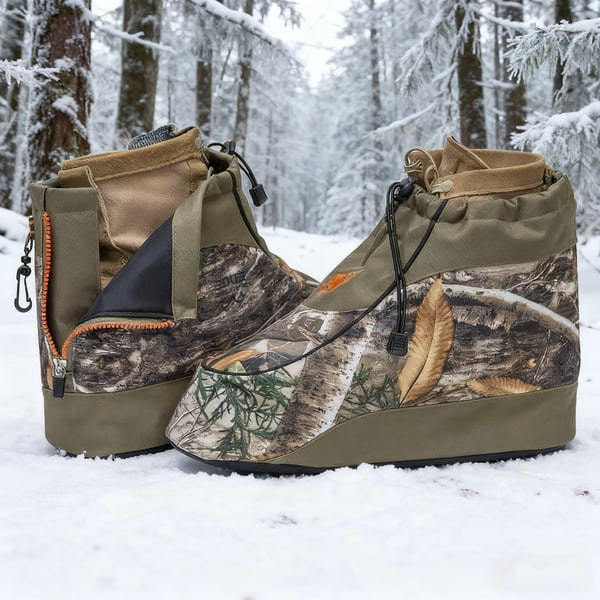 Designed to slip directly over your shoes or boots. The adjustable drawcord and durable zipper provide a snug, secure fit—allowing quick on/off during hunting, fishing, or camping without removing your footwear.